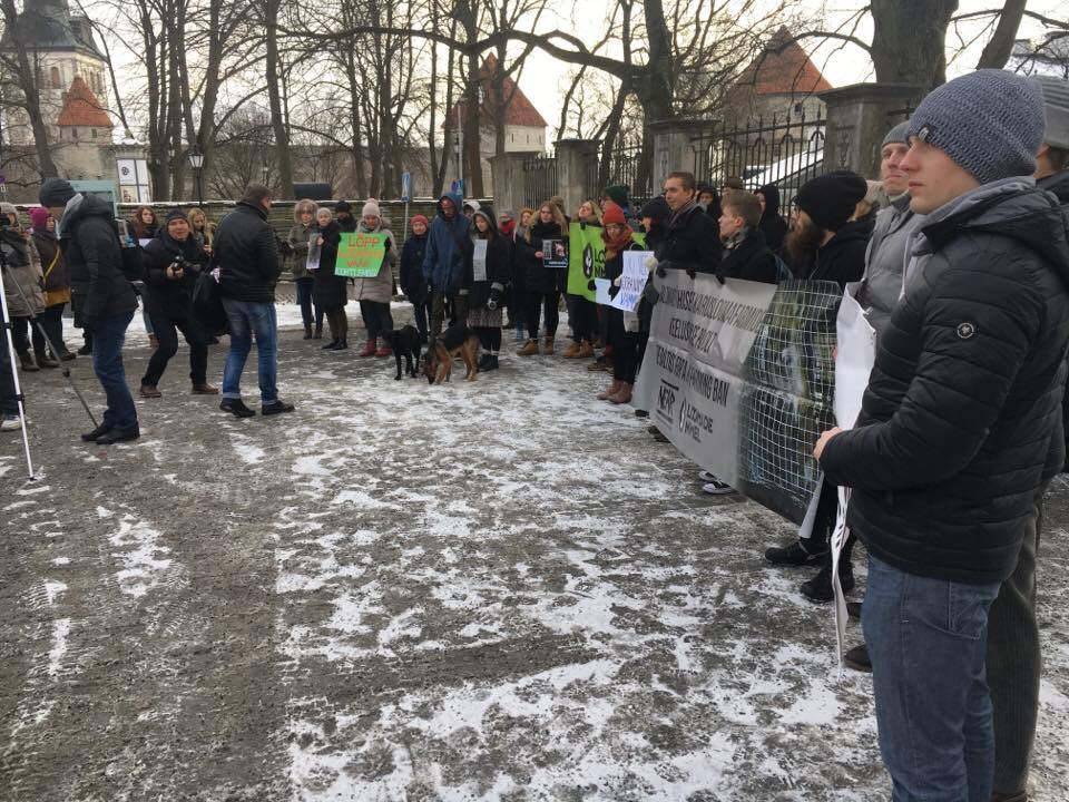 Täna kell 10 korraldasid loomaõiguste organisatsioonid Loomus ja Loomade Nimel riigikogu ees erakorralise meeleavalduse karusloomafarmide keelustamise poolt, kus osales üle 100 inimese. Meeleavaldusel näitasid oma toetust riigikogu keskkonnakomisjoni esimees Rainer Vakra, riigikogu liige Barbi Pilvre, roheliste erakonna ja liikumise Eesti Metsa Abiks esindaja Züleyxa Izmailova ja paljud teised. Samal ajal arutas riigikogu maaelukomisjon Loomuse algatatud pöördumist „Karusloomakasvanduste keelustamine Eestis“.
